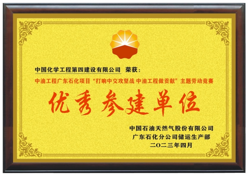 近日,由華北公司承建的廣東揭陽(yáng)石化包裝廠房項(xiàng)目喜訊連連,先后收到業(yè)主單位中國(guó)石油天然氣股份有限公司廣東石化分公司發(fā)來(lái)的“感謝信”和廣東石化分公司儲(chǔ)運(yùn)生產(chǎn)部授予公司的“優(yōu)秀參建單位”榮譽(yù)獎(jiǎng)牌。