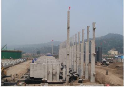 根據(jù)設(shè)計要求,焦?fàn)t氣壓縮機廠房所有水泥立柱均采用混泥土一次性預(yù)制,最后整體吊裝。每根水泥柱長約19米,重達26噸,因其水泥柱上部有不規(guī)則的牛腿,增加了吊裝難度。項目部精心組織,主導(dǎo)施工隊、吊裝公司、業(yè)主連同監(jiān)理各方積極協(xié)調(diào)聯(lián)系,制訂了嚴(yán)密的吊裝計劃,采用160噸吊車進行主吊裝,50噸吊車同時遛尾,并配備了經(jīng)驗豐富的吊裝總指揮,施工總工親自在現(xiàn)場進行技術(shù)支持。