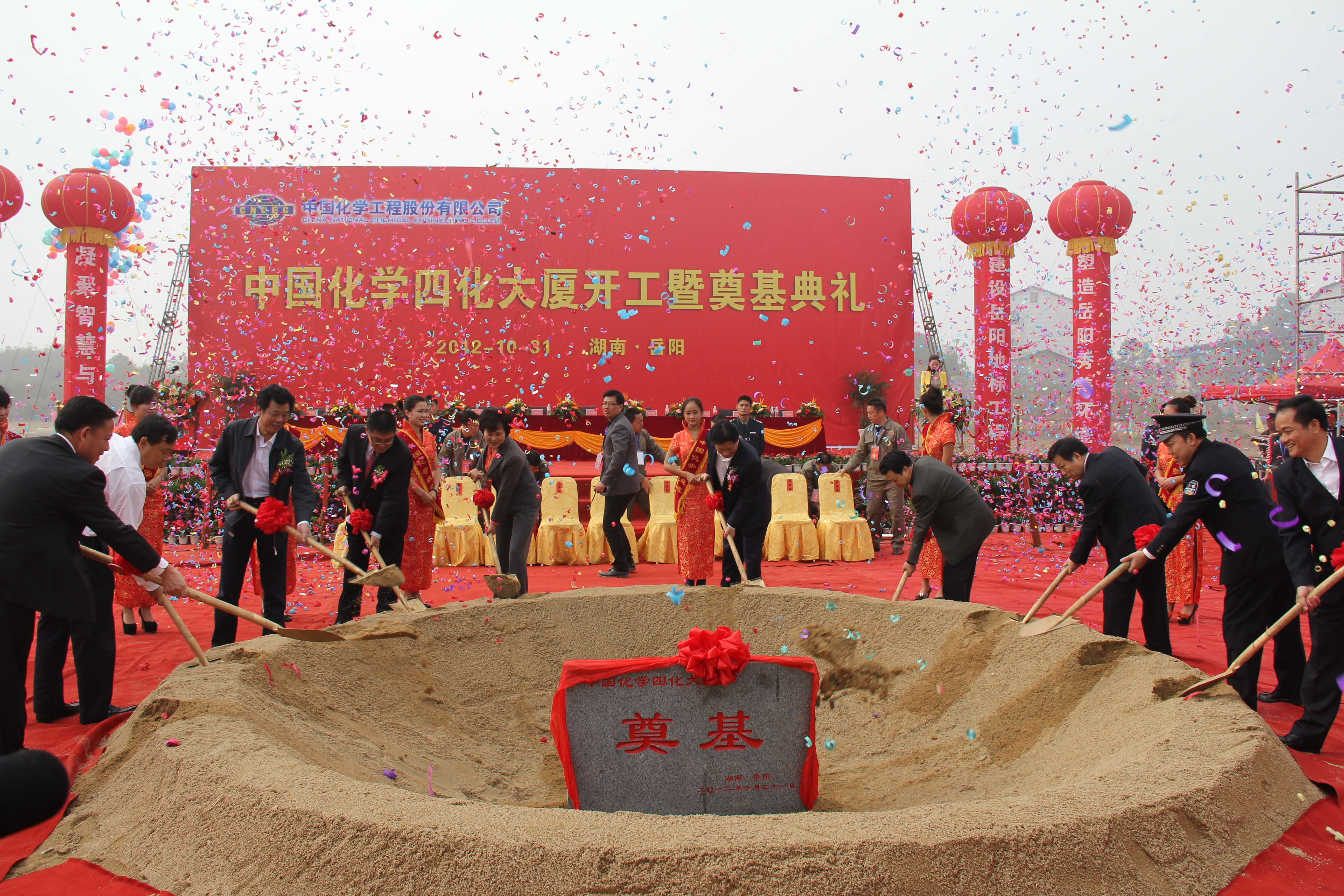 原野起新城,中化筑偉業(yè)。10月31日上午,艷陽(yáng)高照,岳陽(yáng)市經(jīng)濟(jì)技術(shù)開發(fā)區(qū)金鳳橋管理處梅子市村,鼓樂齊鳴,龍飛獅舞,中國(guó)化學(xué)工程股份有限公司在這里隆重舉行中國(guó)化學(xué)四化大廈開工奠基儀式。
