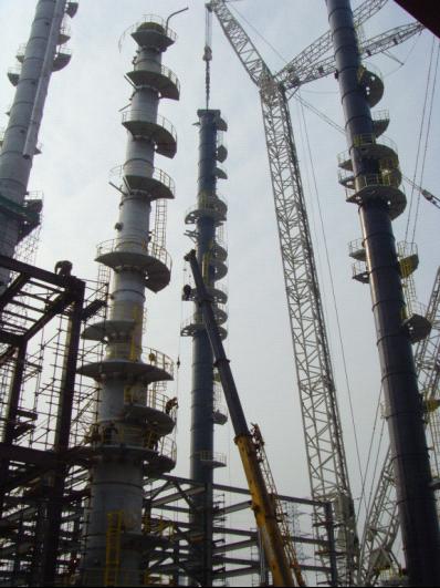 這次惠生大型設(shè)備的吊裝創(chuàng)造了目前公司吊裝史上的五個(gè)之最,即成功吊裝最高的塔(硫化氫濃縮塔高81.2m),成功吊裝最重的塔(甲醇洗滌塔重350t),使用的吊車(chē)規(guī)格最大(1250t吊車(chē)),最先采用鋼結(jié)構(gòu)模塊安裝,最大規(guī)模的一次大型設(shè)備吊裝。
