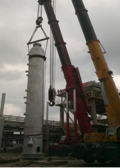 現(xiàn)場(chǎng)場(chǎng)地非常狹窄,操作空間小,吊裝平面布置時(shí)需合理規(guī)劃。安裝制造分公司的領(lǐng)導(dǎo)和專業(yè)人員、江蘇分公司的吊裝工程師和起重技師到達(dá)現(xiàn)場(chǎng)。經(jīng)過(guò)兩天的路面平整,高低不平的地面達(dá)到了運(yùn)輸車及吊車進(jìn)場(chǎng)吊裝要求。項(xiàng)目部選用一臺(tái)180T的吊車和一臺(tái)450T的吊車進(jìn)行吊裝。緊張的吊裝過(guò)程,現(xiàn)場(chǎng)每個(gè)人都不敢有絲毫松懈和差錯(cuò)。3臺(tái)設(shè)備的吊裝,就像是一場(chǎng)技術(shù)與技藝的考量,每一環(huán)節(jié)都要求精準(zhǔn)、無(wú)誤。參與吊裝的全體人員的精心施工確保了每臺(tái)設(shè)備都萬(wàn)無(wú)一失,完好無(wú)損地吊裝就位。原計(jì)劃3天的吊裝時(shí)間,實(shí)際只用了1天半就順利吊裝完成。當(dāng)最后一臺(tái)反應(yīng)器完好就位時(shí),現(xiàn)場(chǎng)響起的掌聲、慶賀聲組成一曲完美的交響樂(lè)。