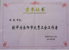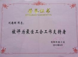 9月30日,在岳陽(yáng)市總工會(huì)召開(kāi)的第六屆代表大會(huì)上傳出喜訊。公司工會(huì)榮獲“岳陽(yáng)市先進(jìn)基層工會(huì)”,公司黨委書(shū)記、董事長(zhǎng)劉德輝被岳陽(yáng)市總工會(huì)授予“岳陽(yáng)市最佳工會(huì)工作支持者”榮譽(yù)稱(chēng)號(hào),公司楊艷被岳陽(yáng)市總工會(huì)授予“岳陽(yáng)市優(yōu)秀工會(huì)工作者”榮譽(yù)稱(chēng)號(hào)。