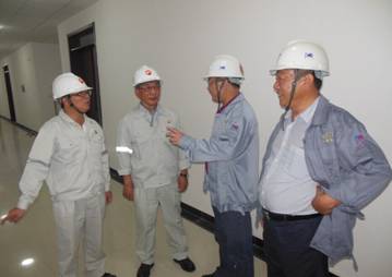 7月17日上午,中煤蒙大項(xiàng)目總包方廣東寰球董事長王偉、現(xiàn)場項(xiàng)目經(jīng)理金柏祥,公司總經(jīng)理胡流芳,在項(xiàng)目經(jīng)理欒立超等陪同下,對華北分公司所承建的四個(gè)單體、全廠管廊進(jìn)行檢查指導(dǎo)。