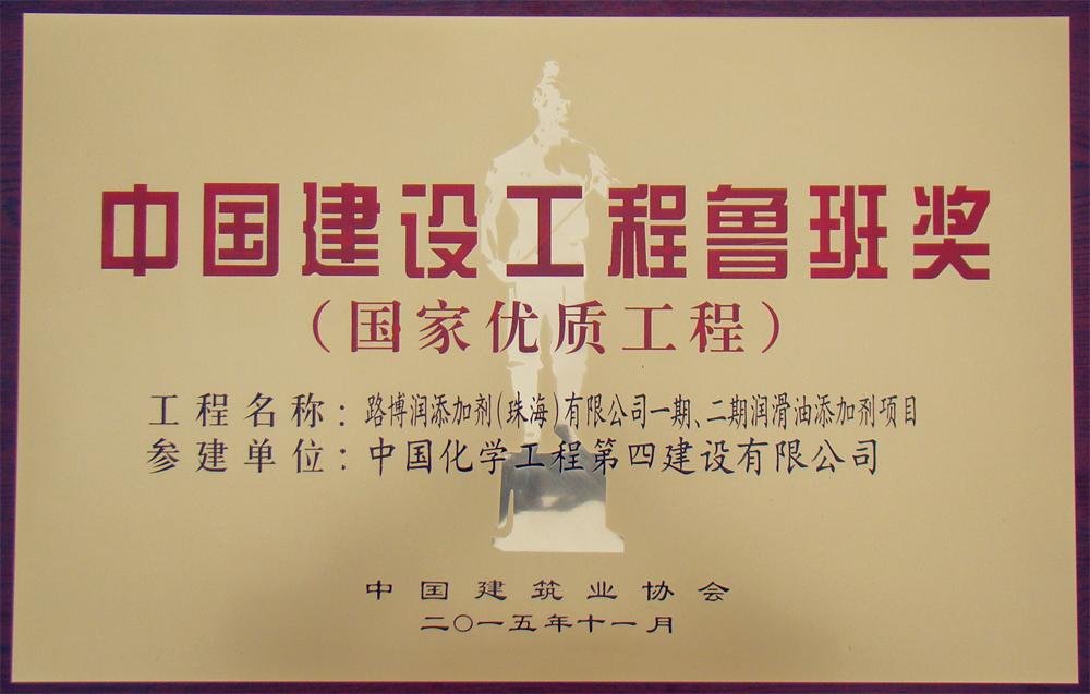 11月17日,國(guó)家住房城鄉(xiāng)建設(shè)部通報(bào)表彰了2014~2015年度中國(guó)建設(shè)工程魯班獎(jiǎng)(國(guó)家優(yōu)質(zhì)工程)獲獎(jiǎng)單位,中國(guó)建筑業(yè)協(xié)會(huì)在北京釣魚臺(tái)國(guó)賓館舉行隆重的表彰大會(huì),華南分公司參建的路博潤(rùn)添加劑(珠海)有限公司一期、二期潤(rùn)滑油添加劑項(xiàng)目榮獲中國(guó)建筑業(yè)的最高榮譽(yù)獎(jiǎng)——魯班獎(jiǎng)。這是公司成立61年來(lái)首次榮獲此項(xiàng)殊榮。