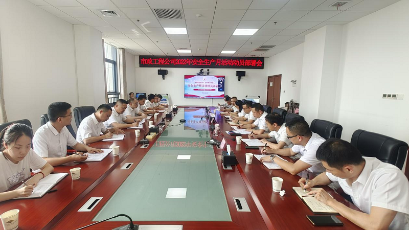 近日,市政工程公司舉行安全生產月活動動員部署會。市政公司黨支部書記、經理何學杰主持會議。會上對市政公司近期安全生產大排查大整治工作的開展情況進行了通報,宣貫了公司《關于開展2022年安全生產月活動的通知》精神,集中觀看安全生產主題宣教片《生命重于泰山》,并開展了“遵守安全生產法,當好第一責任人”主題橫幅簽名活動。