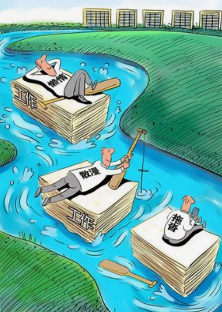 工作時(shí)候玩忽職守、消極怠工,不認(rèn)真馬虎了事,三天打魚兩天曬網(wǎng)。