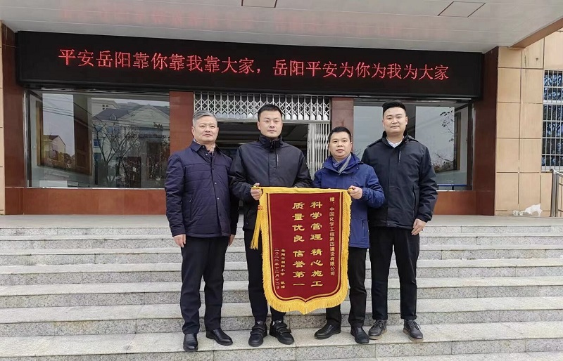 岳陽市政府機(jī)關(guān)事務(wù)管理中心、市朝陽小學(xué)到岳陽污水治理項(xiàng)目部贈(zèng)送錦旗致謝函