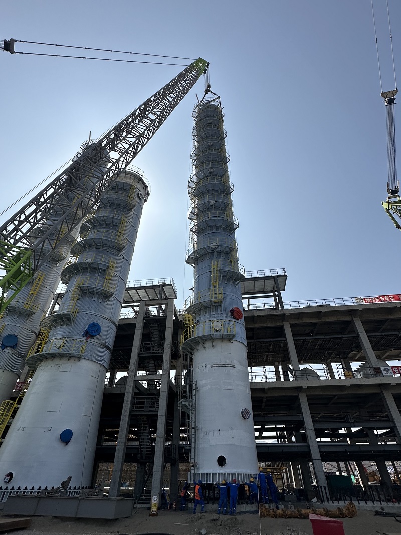 西部公司福建申遠項目T202苯回收塔吊裝成功