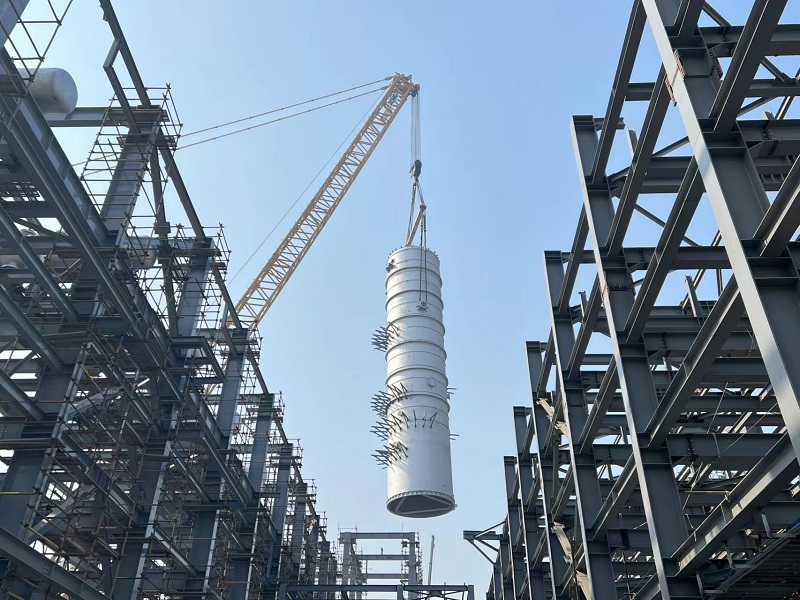 大連恒力石化新材料項(xiàng)目苯酚丙酮裝置大件設(shè)備完成吊裝