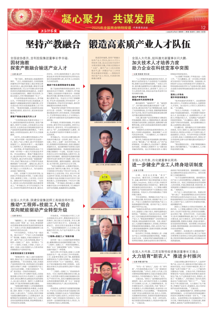 3月6日,證券時報客戶端以“堅持產(chǎn)教融合 鍛造高素質(zhì)產(chǎn)業(yè)人才隊伍”為題報道周鴻的建議:進一步健全產(chǎn)業(yè)工人終身培訓(xùn)制度。