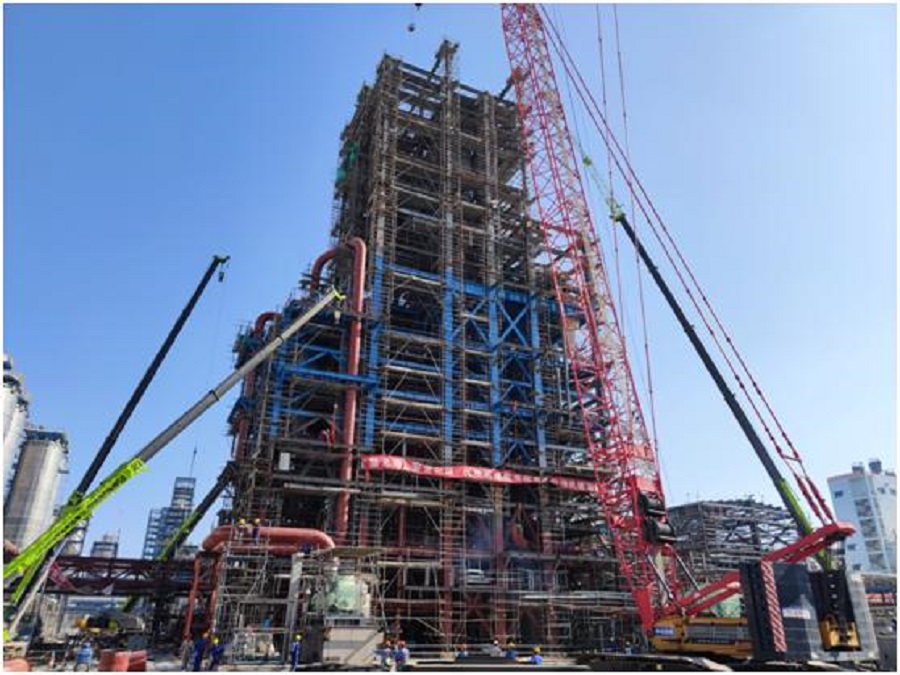 中南分公司寧波項目裝置主反應(yīng)框架順利封頂