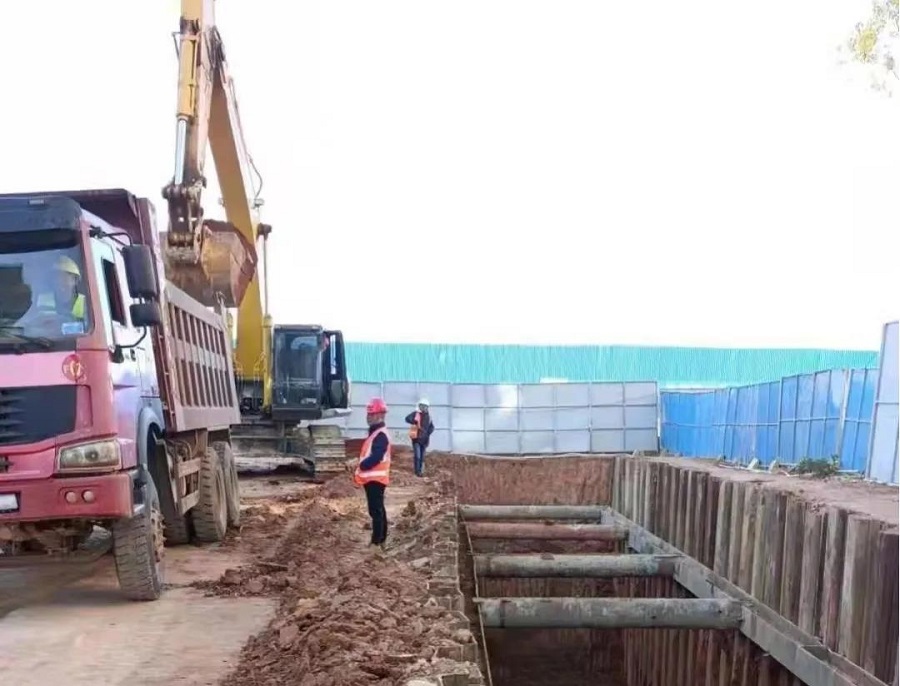 該工程為桔林路新建雨水管道,末端接入楊家壟路預留雨水檢查井,待建楊家壟路、虎形山路、蓮花路雨水管道完工后,可暢通湖濱大道雨水的排水出路,有效解決湖濱大道長期積水問題。中南分公司項目部已于2021年10月底進場,并完成封圍擋與施工現場清表工作;進入11月后,相繼開展旋挖引孔及鋼板樁施工。截止11月29 日,中南分公司片區(qū)已完成引孔4000米,鋼板樁施工3600米,溝槽開挖60米,并安排部署雨水混凝土涵管及污水克拉管安裝作業(yè)。