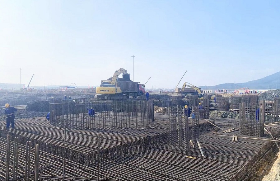 該裝置項(xiàng)目共有7個(gè)單元,自8月15日開工以來,項(xiàng)目部克服工期時(shí)間緊、地質(zhì)巖石多、施工現(xiàn)場點(diǎn)多面廣、疫情防控難等諸多困難,全力搶抓進(jìn)度。截至目前,初期雨水池池壁鋼筋已綁扎完成,氧化提濃單元核心設(shè)備基礎(chǔ)承臺澆筑完成,精餾單元各框架基礎(chǔ)陸續(xù)施工,異丙苯單元大面積開挖,裝置變電所基礎(chǔ)柱、梁混凝土澆筑完成。項(xiàng)目部將充分利用好當(dāng)前晴好天氣,合理組織班組施工作業(yè),全力加快施工進(jìn)度,確保完成各項(xiàng)既定任務(wù),為黨的二十大勝利召開獻(xiàn)禮。